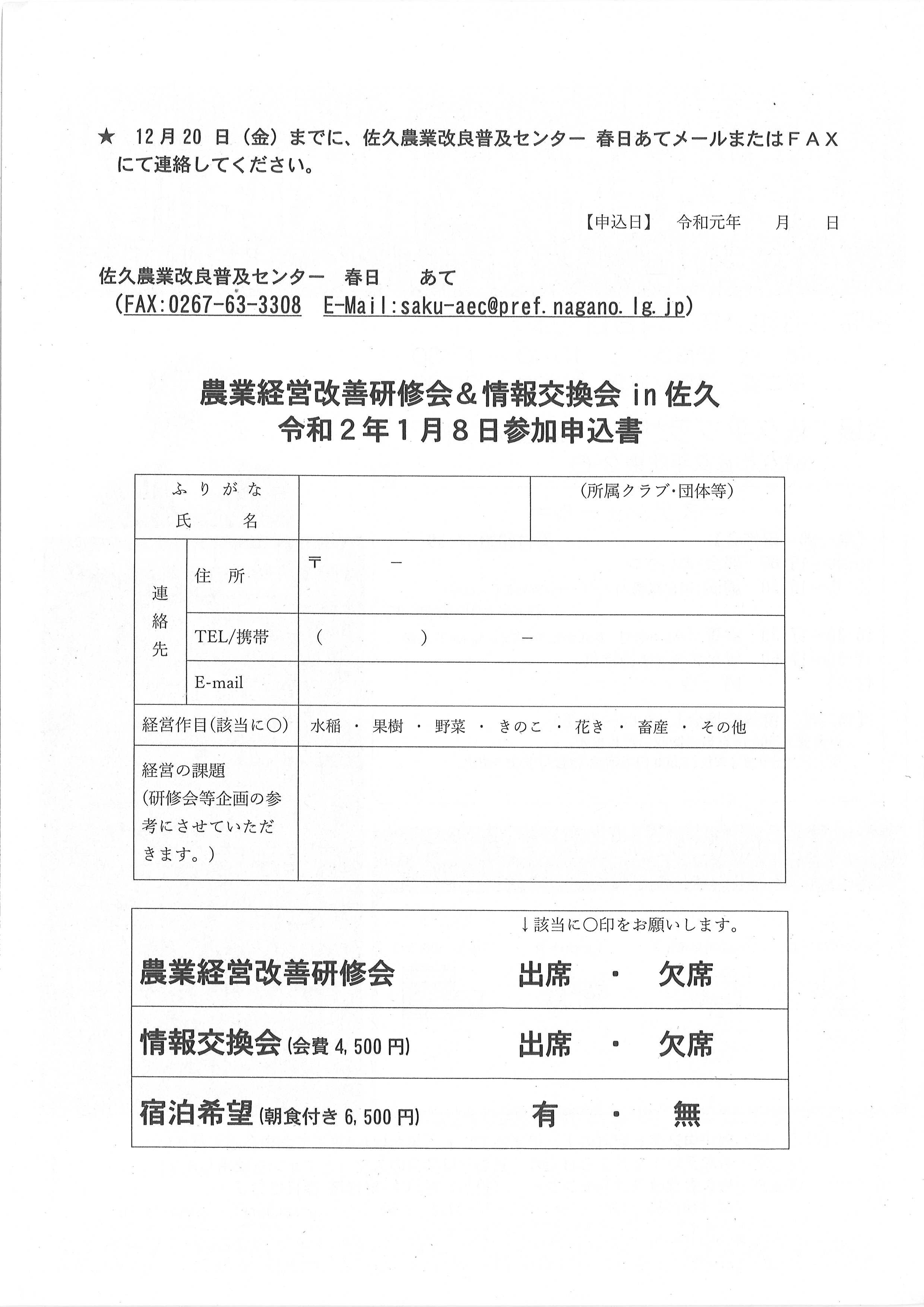 「農業経営改善研修会&情報交換会 in佐久」の開催について